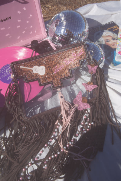 Introducing Dolly Taught Me, a Haute Southern Hyde by Beth Marie Exclusive. Featuring beautiful tooling with pops of pink, and a matching tooled strap. Ofcourse she has a clear bag body to be stadium and event ready. She closes via zipper to keep your valuables safe.